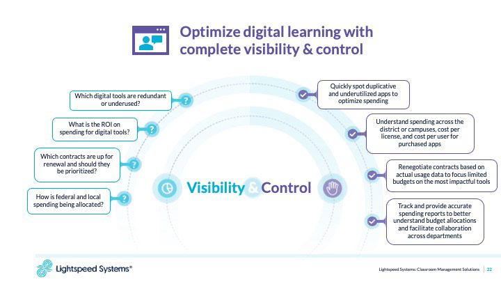 Presentation design for Lightspeed Systems. Applying new branding and visuals to explain the Lightspeed platform to potential clients.